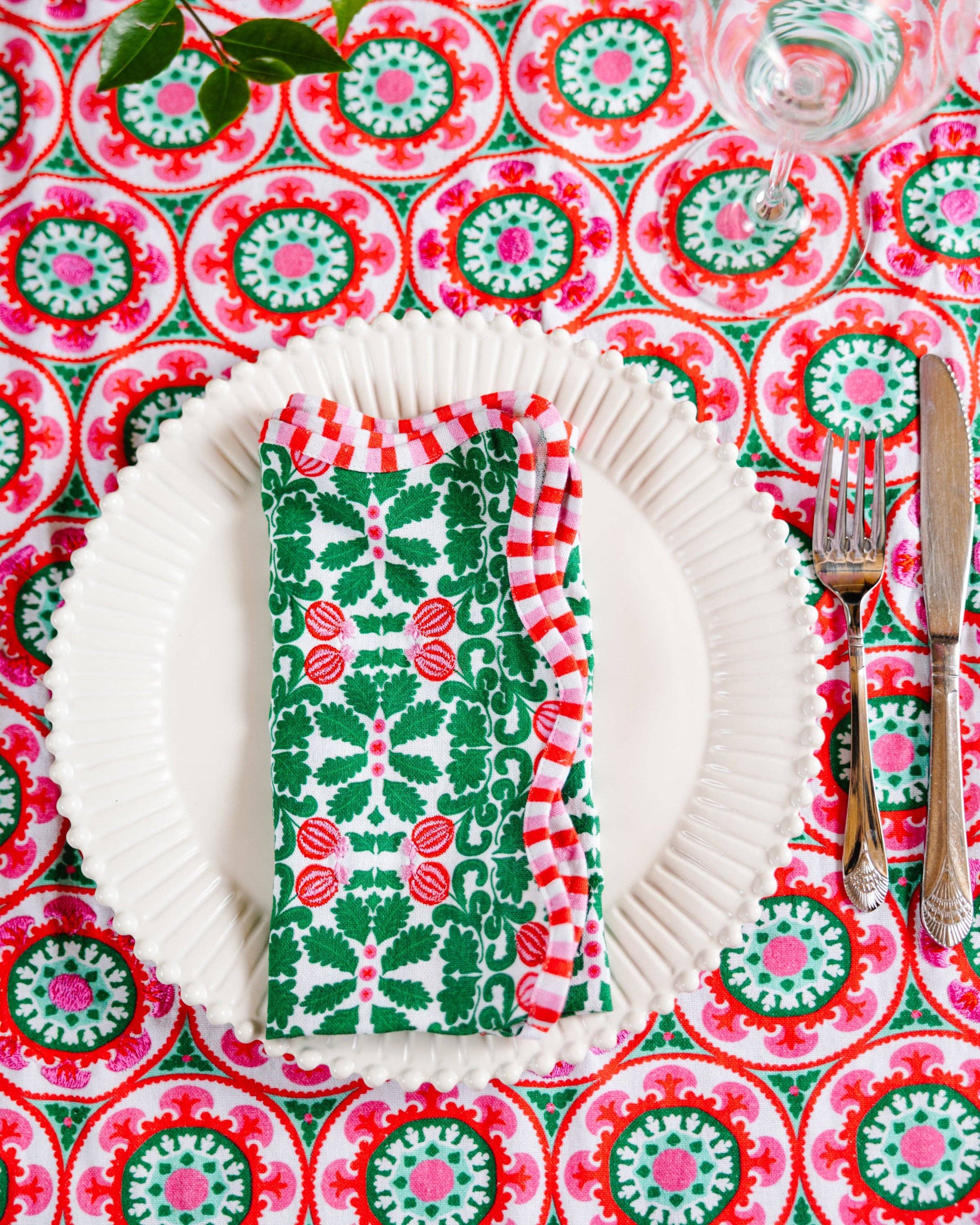 For the ones who know that every table deserves a little drama. This square embroidered Suzani-print linen is for those who live for bold patterns, rich history, and setting the scene like it’s their superpower. Because why blend in when your table can stand out?