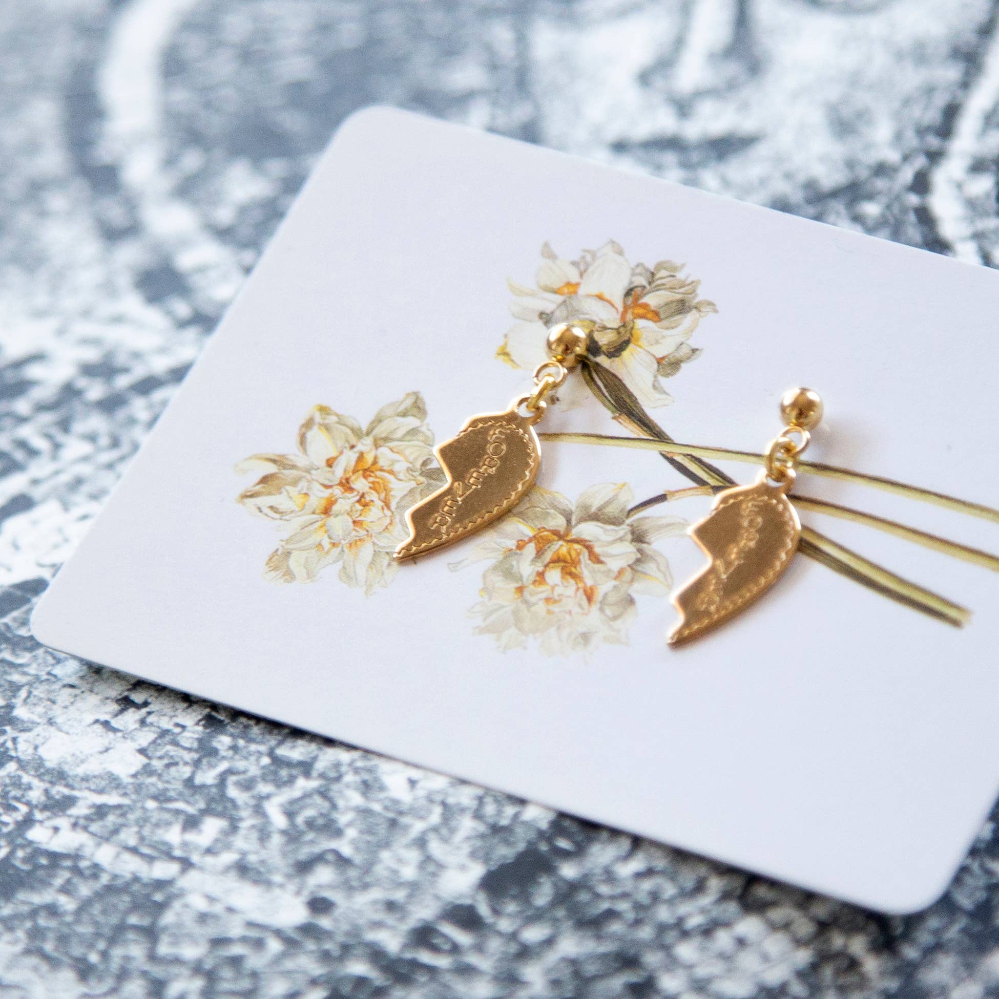 Deadstock vintage gold-plated broken heart charm with "forever" text etching on gold vermeil posts (2X industry standard gold-plating on hypoallergenic, 100% recycled sterling silver). All charms are secondhand & vintage to reduce our impact on the environment - some typical aging is to be expected but gives these pieces character. 20mm X 9.5mm charms
