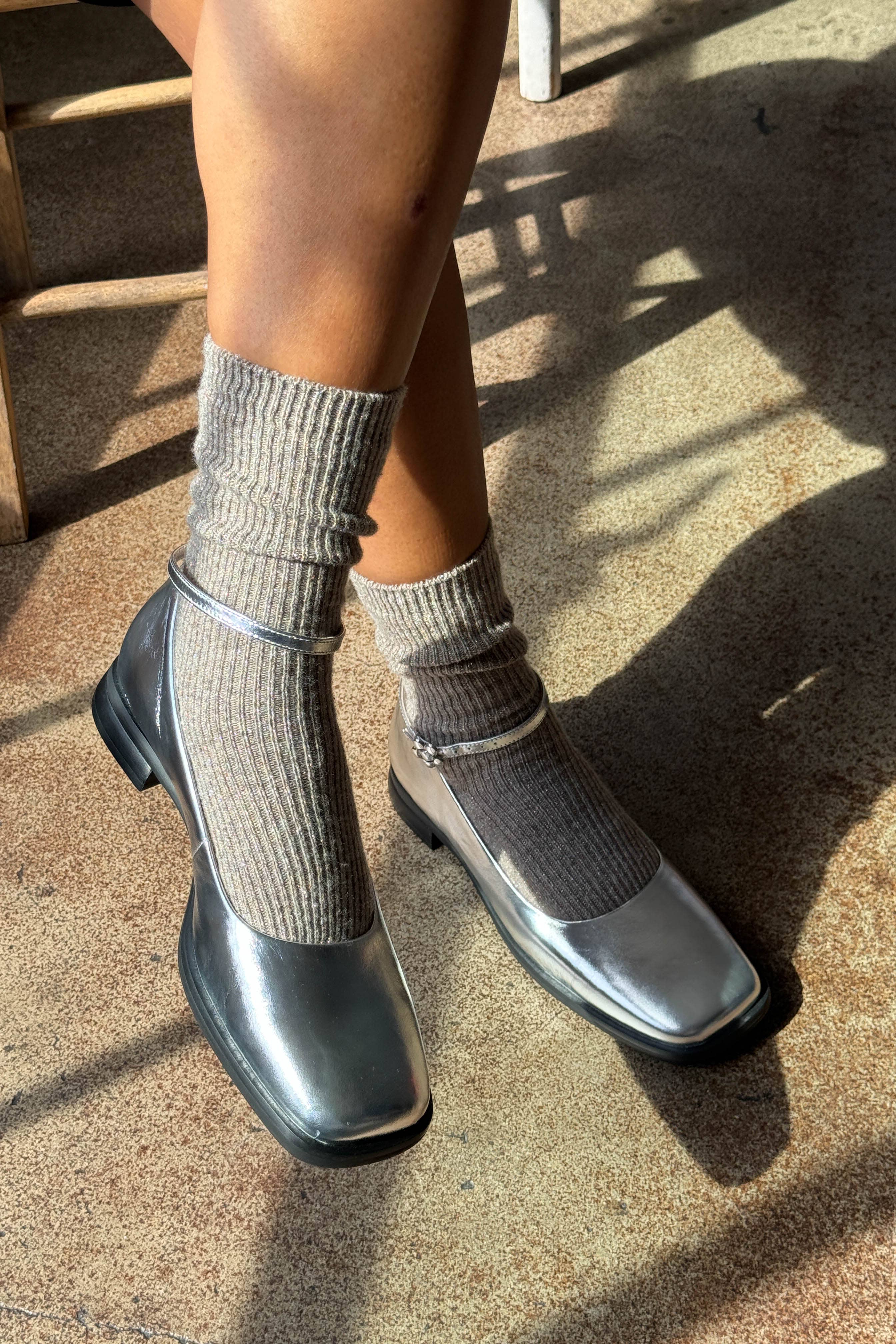 Nothing says twinkle toes like the Winter Sparkle Socks. Crafted from a cozy wool-Lurex blend, this sparkly version of the Snow Socks is sure to get you through the winter chill in style. The extra length can be worn up for an added layer of warmth or scrunched or folded with your favorite clogs or Mary Janes. Made in South Korea Contents: Wool 53%, Nylon 25%, Polyester 12%, Silk 4% , Lurex 4% , Spandex 2% Sizing: One size fits most (US women's size 6-10) Care Instructions: Machine wash cold Line dry Do not iron Do not bleach